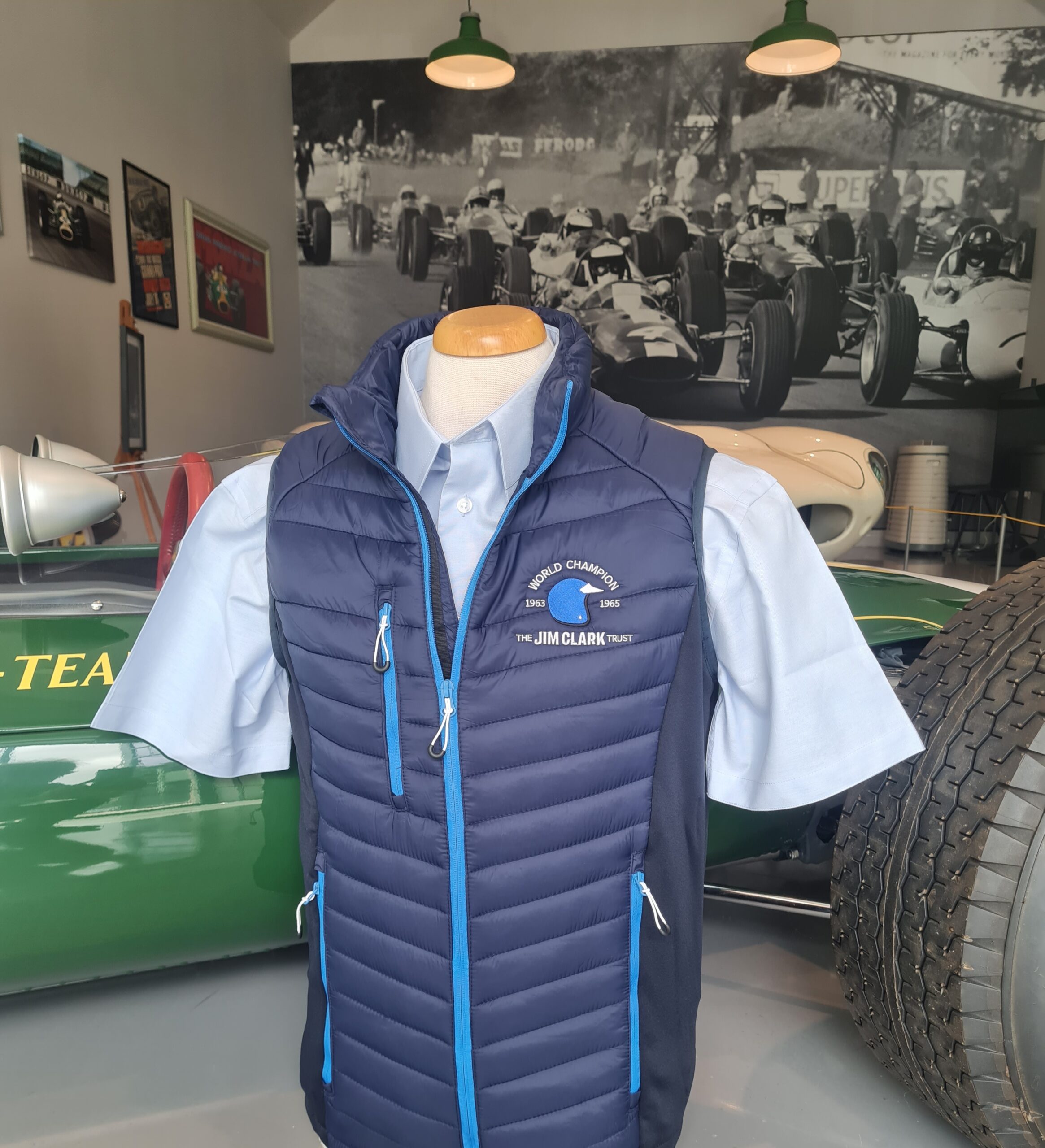 The Jim Clark Trust Bodywarmer features new Jim Clark Trust logo with World Champion 1963 and 1965