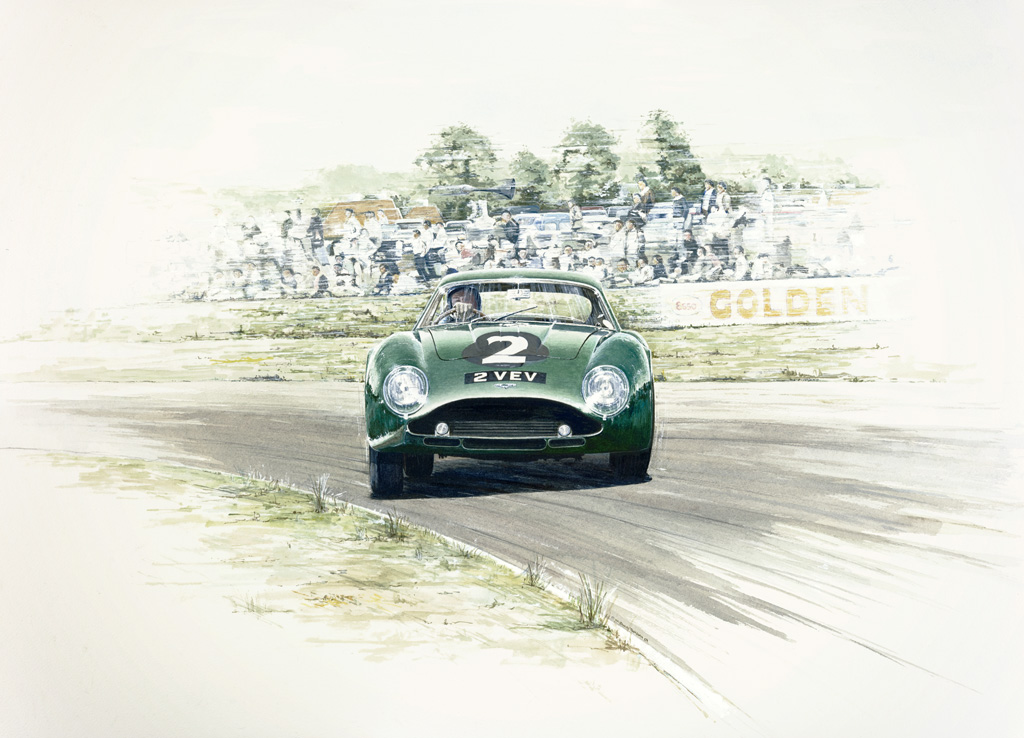 - Print Number 3: Fine art prints of Jim Clark driving Aston Martin Zagato 2VEV at the 1962 Goodwood Tourist Trophy. Limited edition prints on 300gms paper hand signed and numbered by the artist