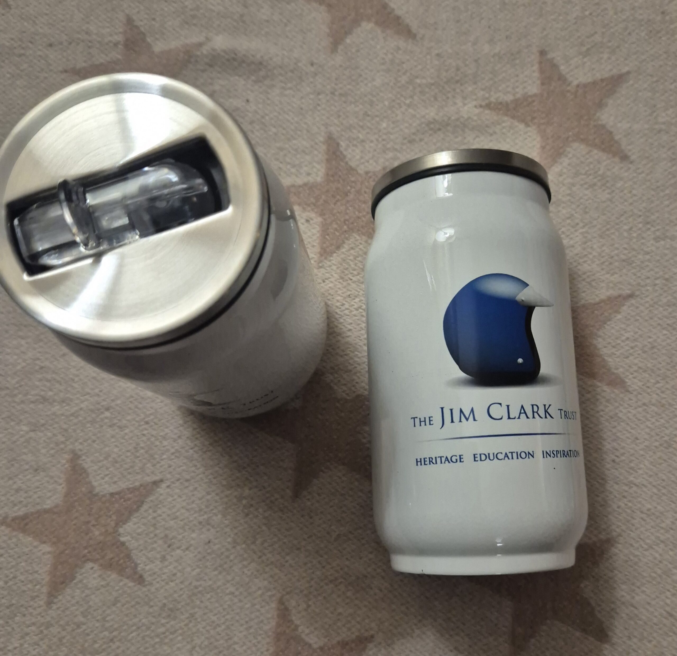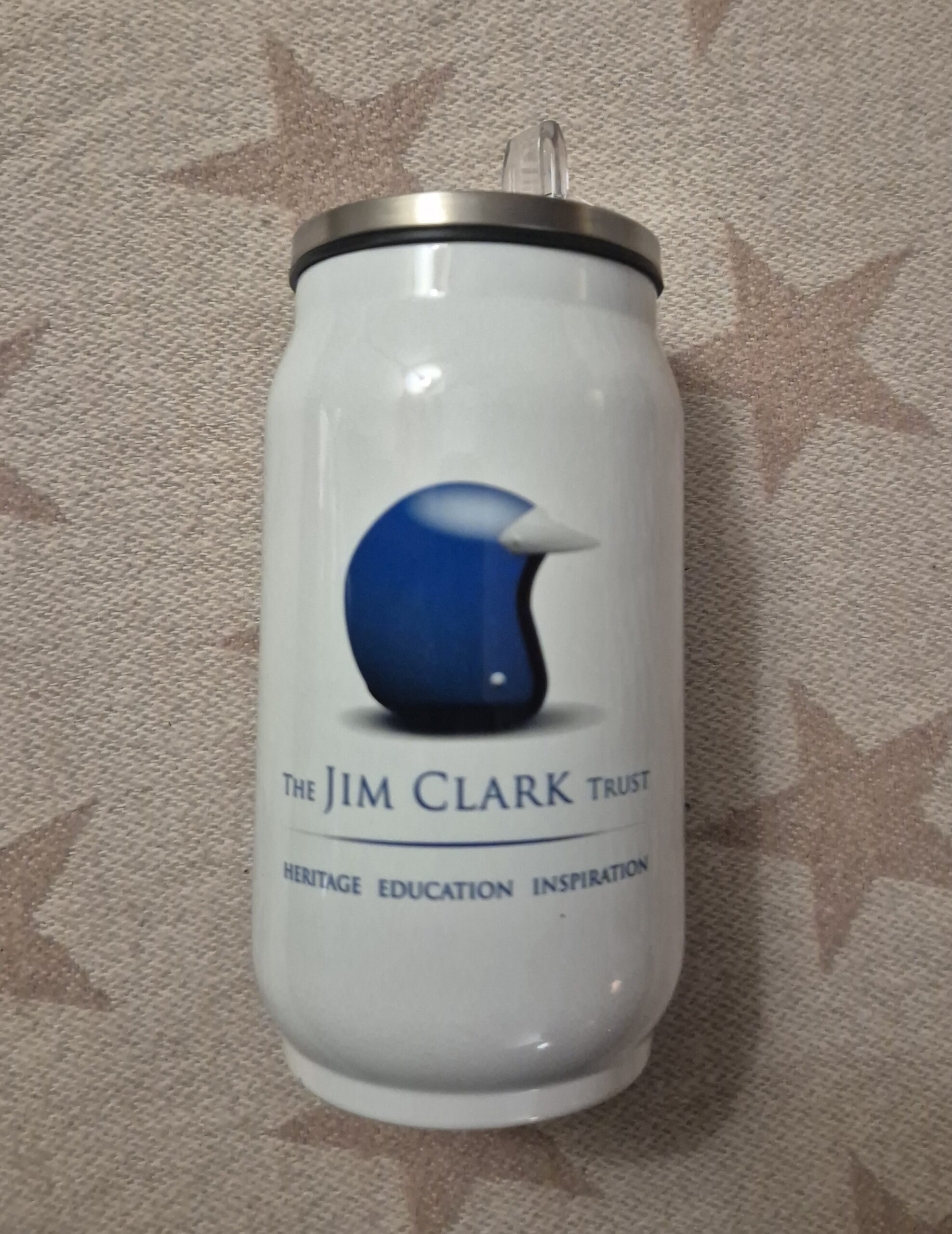 Travel in style with this Jim Clark Trust insulated flask featuring a convenient straw lid. Its slim profile is perfectly sized to fit most car cup holders, making it an ideal companion for your daily commute or long journeys.