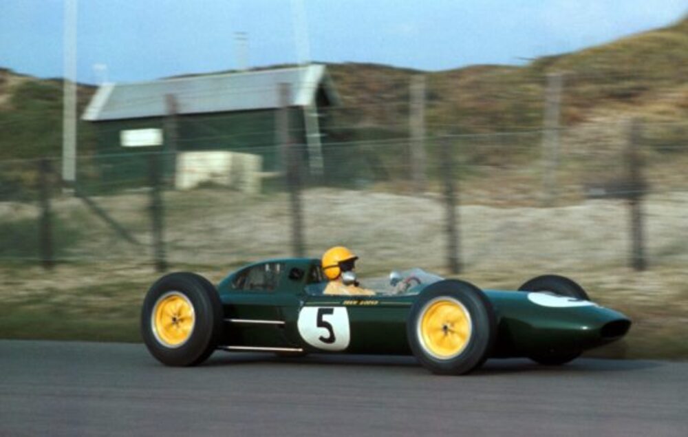 Trevor on the way to second place in the 1962 Dutch GP with the space-frame Lotus 24-Climax;  Jim, though, was committed to the Lotus 25 (below).